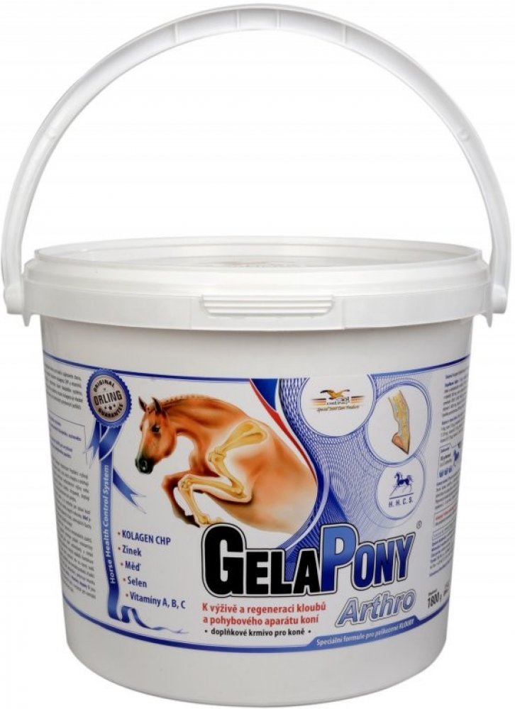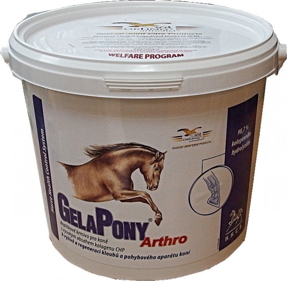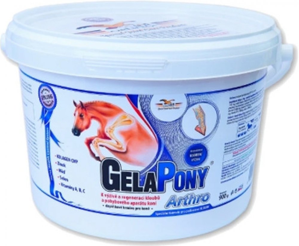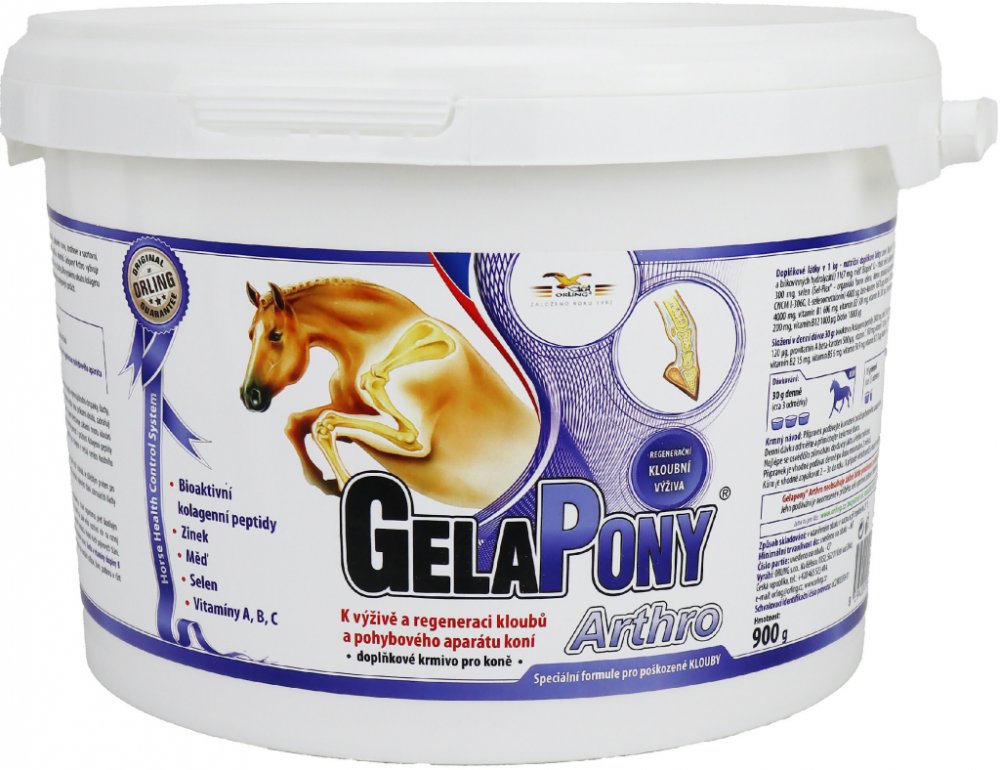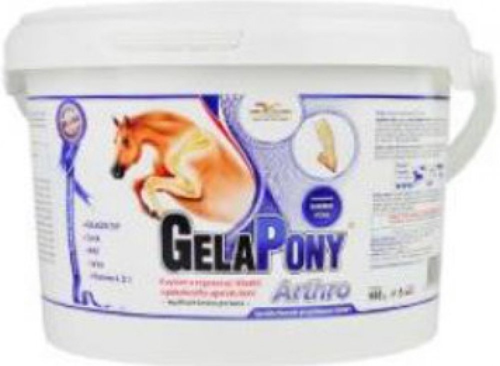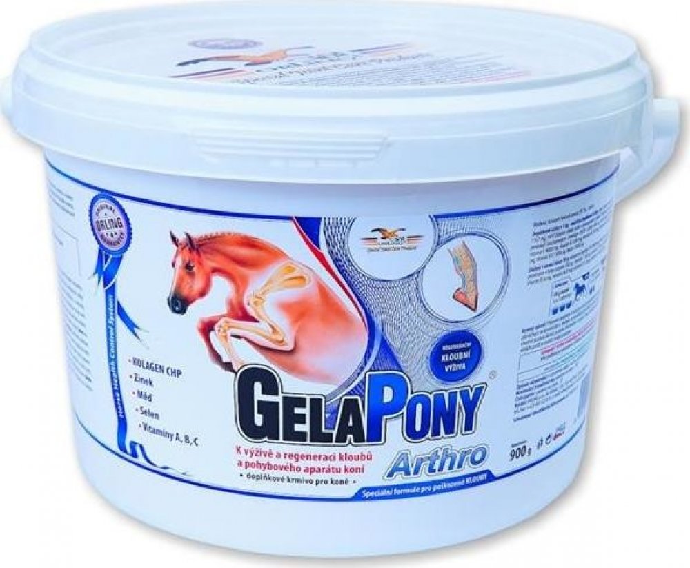 Vyznačuje se vysokým obsahem kolagenu CHP a vitamínů. Gelapony Arthro je určený pro regeneraci kloubního systému koní, pro posílení kostí, vazů a šlach koní - jedná se o koncentrované doplňkové krmivo.