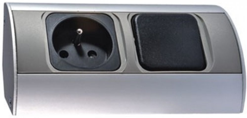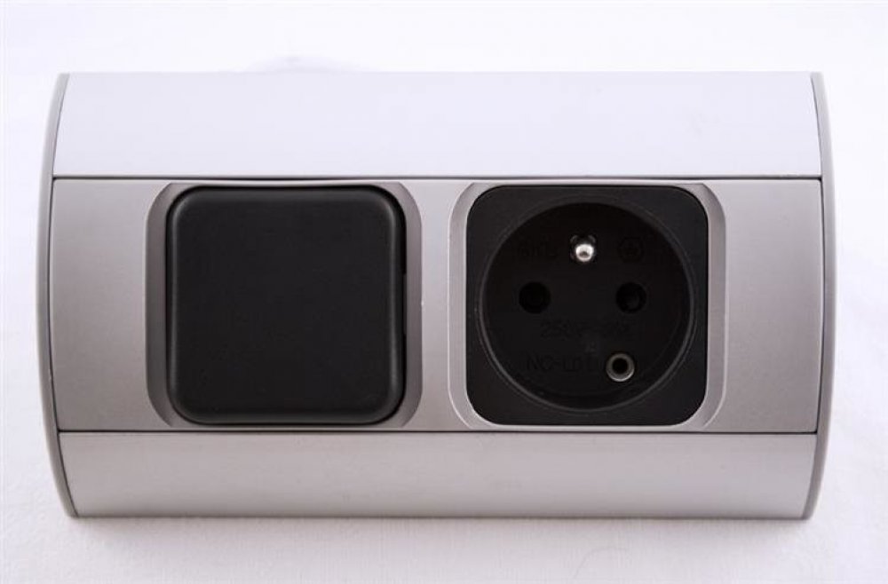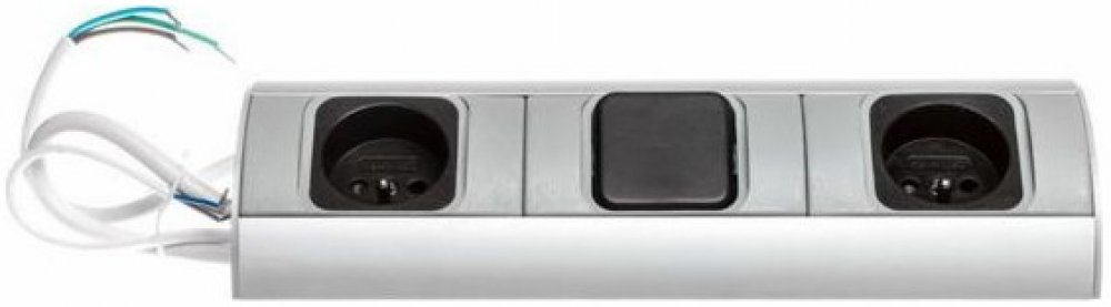 Sada zásuvek 2P+Z s vypínačem. Určeno pro vnitřní instalaci pod skříňky, do skříněk a výloh.