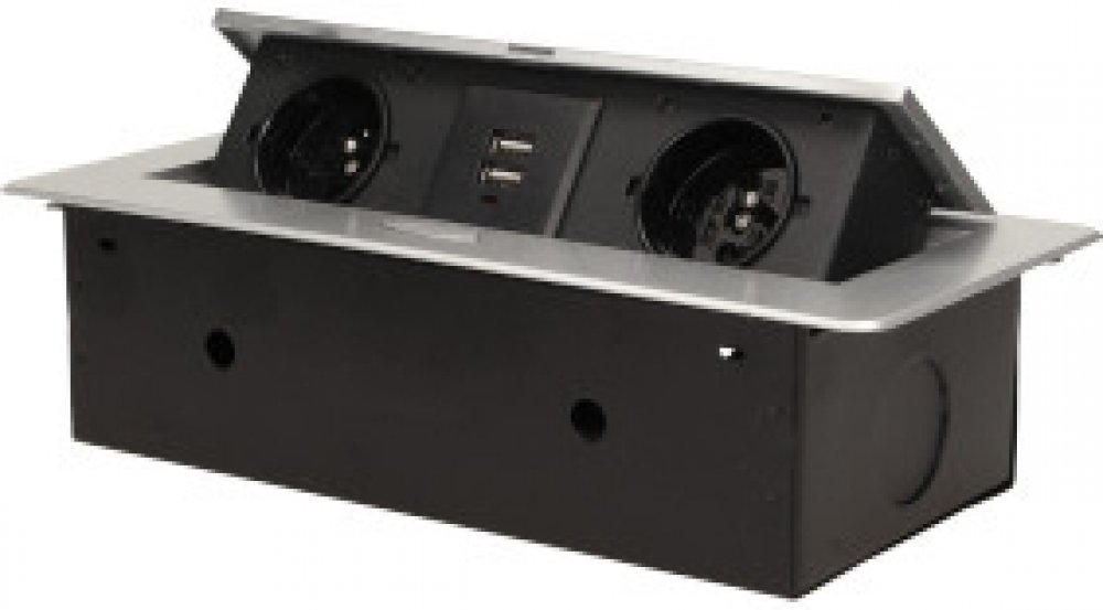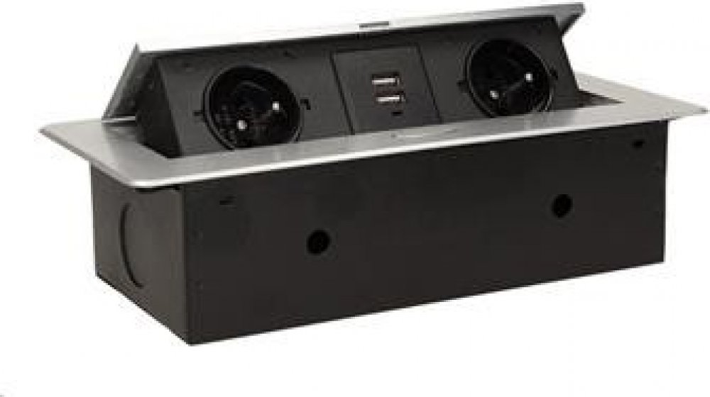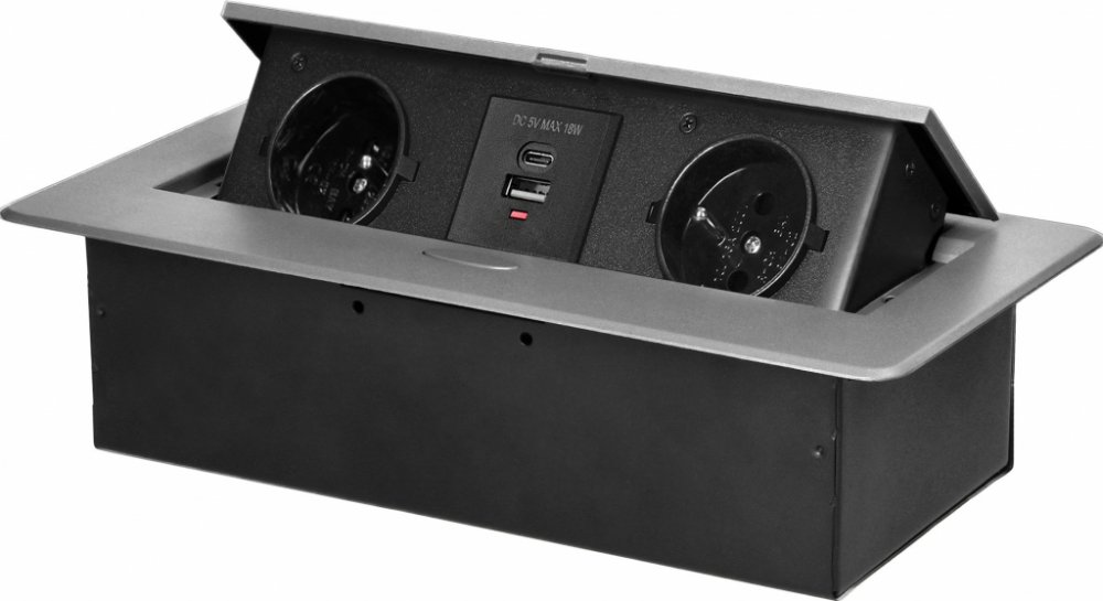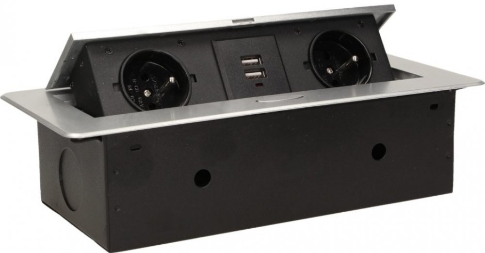 Zapuštěná nábytková zásuvka s plochou frézovanou hranou se vyznačuje nejen svým minimalistickým designem, ale také funkčností. Frézovaná hrana umožňuje estetickou instalaci bloku, takže montážní otvor a linie řezu zůstanou zakryté. Charakteristickým znakem modelu je kompletní spodní kryt, který usnadňuje instalaci a zvyšuje bezpečnost. Krytá kabelová průchodka s pryžovým těsněním chrání před nežád...
