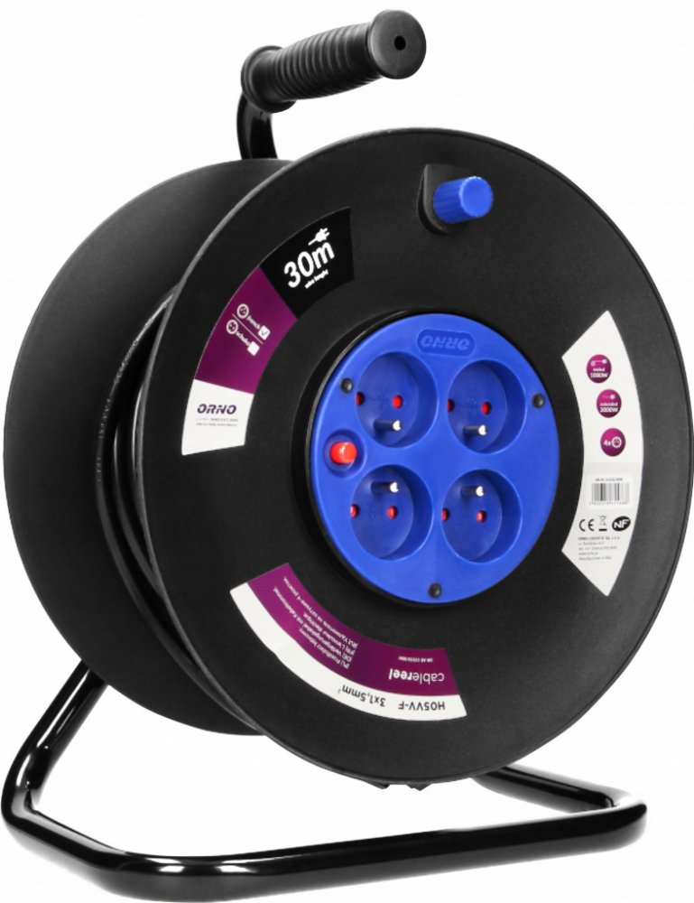 Stupeň krytí IP20Bubnový prodlužovací kabel ORNO 50m,se 4 zásuvkami, PVC, H05VV-F 3x1,5mm2