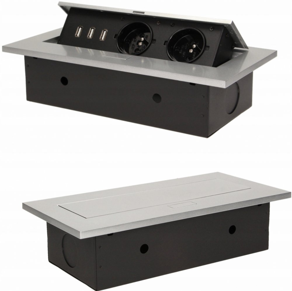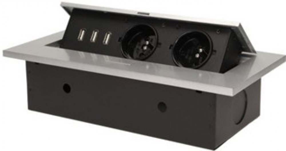 Zapuštěné zásuvky do pracovní desky ORNO 2x2P+Z, 3xUSB se silnou hranou, stříbrná