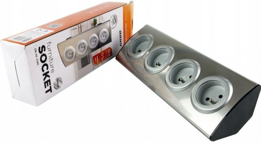 ORNO Povrchová rohová zásuvka 4x 230V, nerez