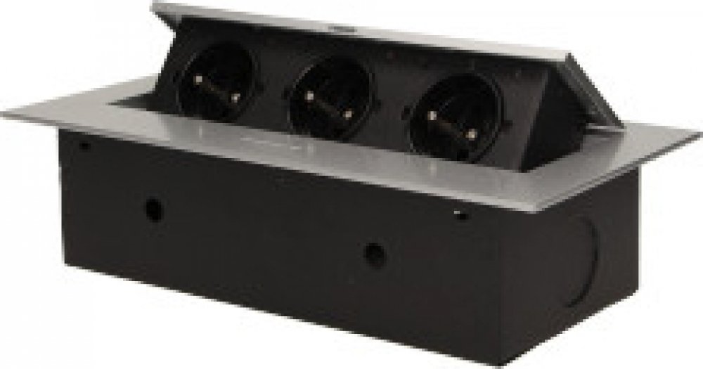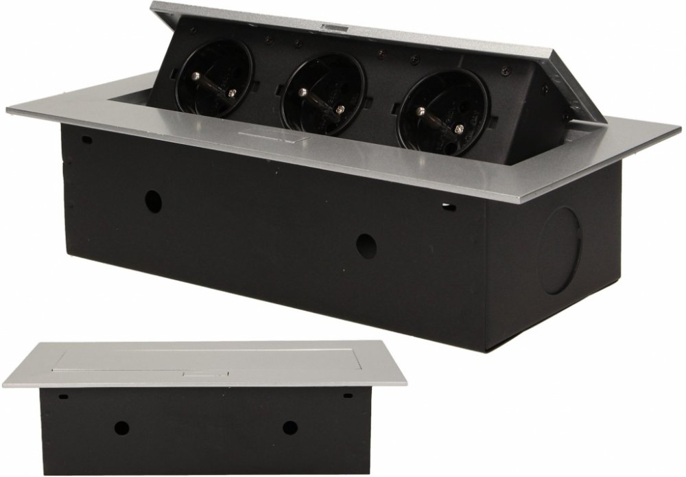 Výklopná zásuvka do pracovní desky ORNO OR-AE-1371/G, 3x zásuvka, stříbrná