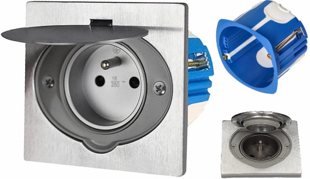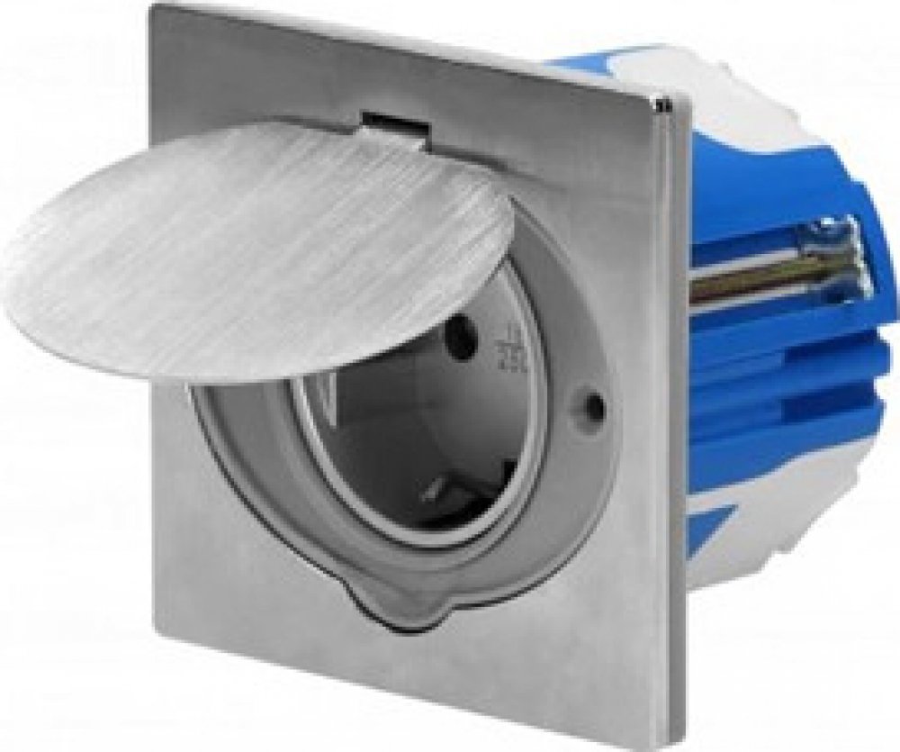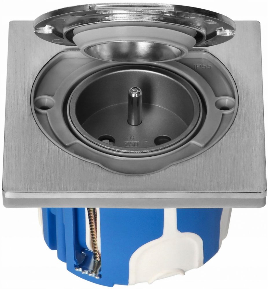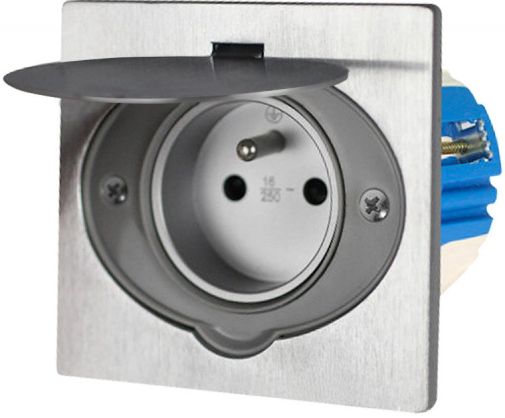 jednozásuvka v hermetickém pouzdru pro zapuštění do podlahy, na zeď
