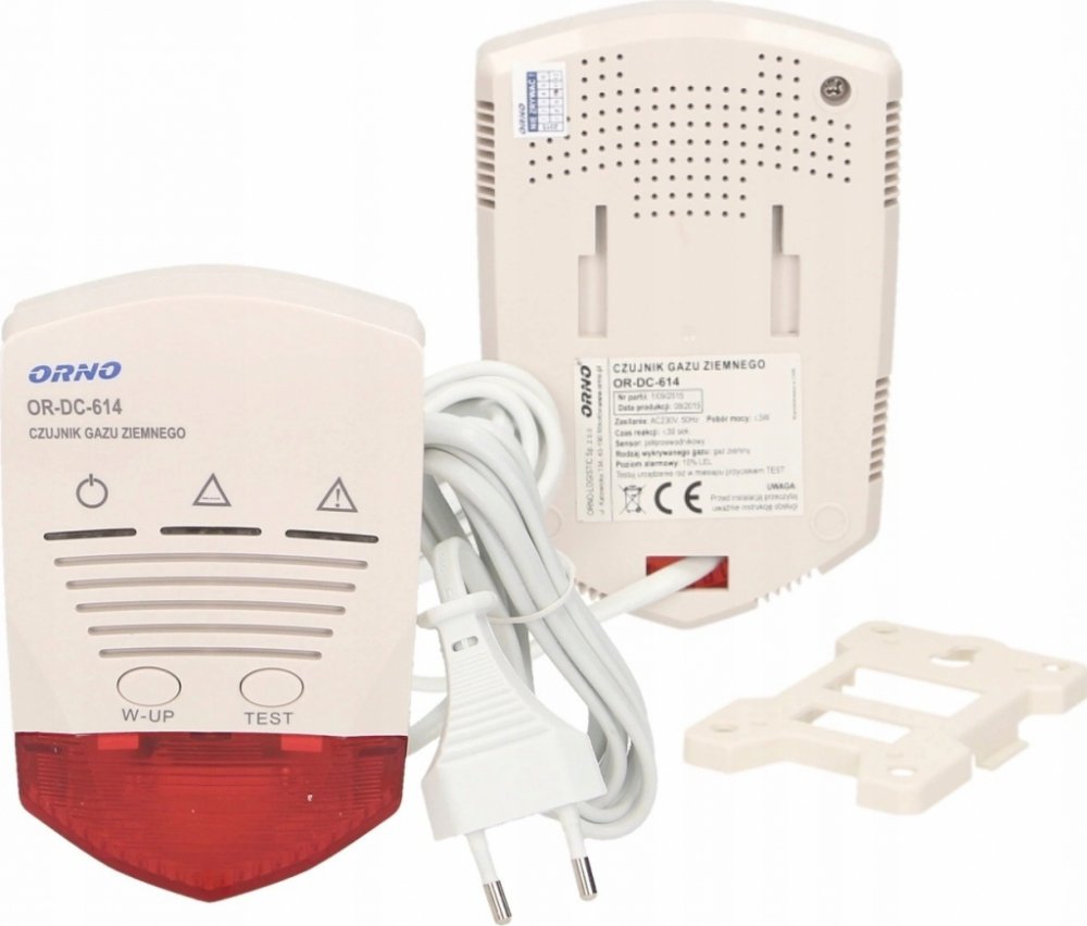 SÍŤOVÝ DETEKTOR PLYNU ORNONejmodernější poplašné zařízení pro detekci koncentrace zemního plynu v interiéru. Slouží k nepřetržitému monitorování přítomnosti a detekci hořlavých plynů unikajících z netěsností. Zařízení využívá vysoce kvalitní polovodičový senzor, který dosahuje vysoké míry detekce. Detektor má optické a zvukové hlášení, které se spustí při překročení přípustné koncentrace. Úroveň alarmu: 10% LEL, tlačítko TEST umožňuje zkontrolovat správnou funkci čidla. Přídavný reléový výstup umožňuje vyslání impulsu do jiného zařízení při překročení alarmové koncentrace (např. ventilátor, poplachová siréna, telefonní volič), k dispozici je přídavný napájecí kontakt 12 V DC, např. pro uzavření ventilu uzavírajícího přívod plynu do zařízení. Průměrná životnost vnitřního čidla je přibližně 5 let.Typ síťového napájení (230 V)Napájecí napětí 230V, 50HzTypy detekovaného nebezpečí Zemní plyn Detektor zemního plynu 230V AC ➡️ Senzor OR-DC-614 je moderní detektor zemního plynu pro vnitřní použití. Slouží k nepřetržitému monitorování přítomnosti a detekci zemního plynu unikajícího netěsnostmi. Přístroj využívá vysoce kvalitní polovodičový senzor, který dosahuje vysoké míry detekce. Při detekci úniku plynu, který dosáhne nastaveného prahu alarmu, detektor vydá signál a aktivuje se červená LED dioda.➡️ Detektor zemního plynu - Hlavní funkce:✔️ Napájecí napětí,✔️ Typ napájení: Síťové,✔️ Detekce hrozby: Zemní plyn,✔️ Hlasitost (dB): ≥70,✔️ Tlačítko "TEST".
