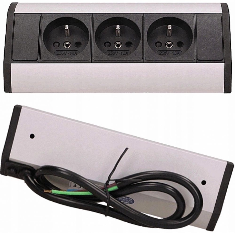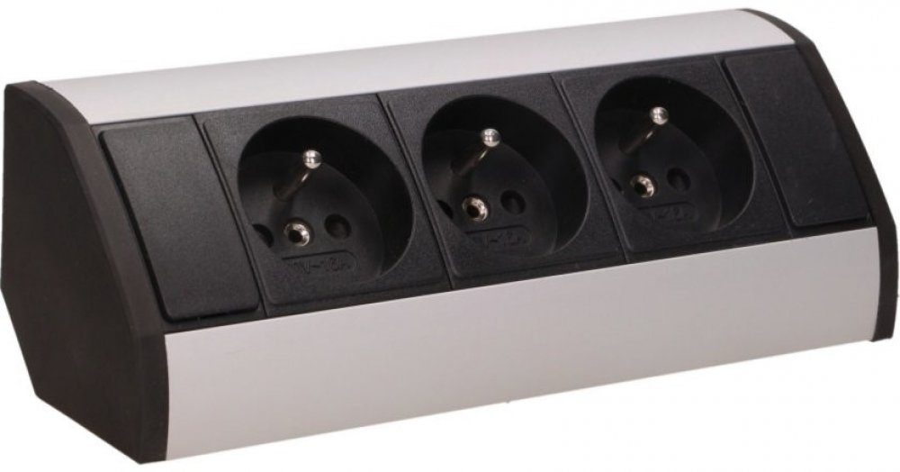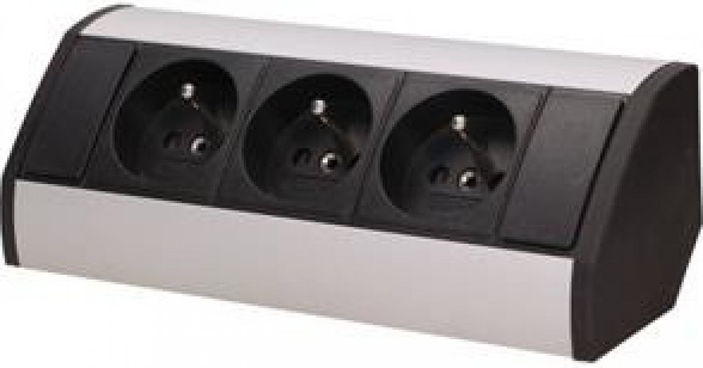 ve stříbrno-černé barvě se třemi zásuvkami 230V stabilní a pevné