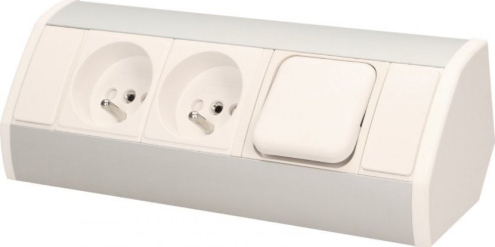 Nábytková zásuvka s vypínačem ORNO OR-GM-9002/W-G, rohové pouzdro, 2x, barva bílo-stříbrná