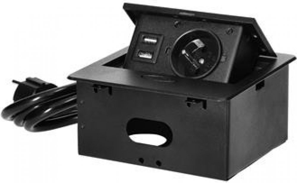 Nábytková zásuvka výklopná 230V + 2x USB, černá