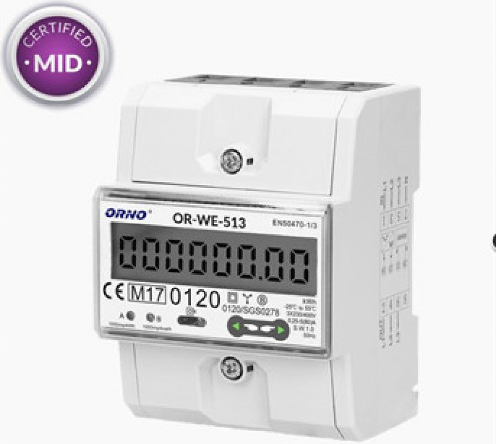 Elektroměr 3F na DIN lištu třífázový Orno OR-WE-513 digitální, MID