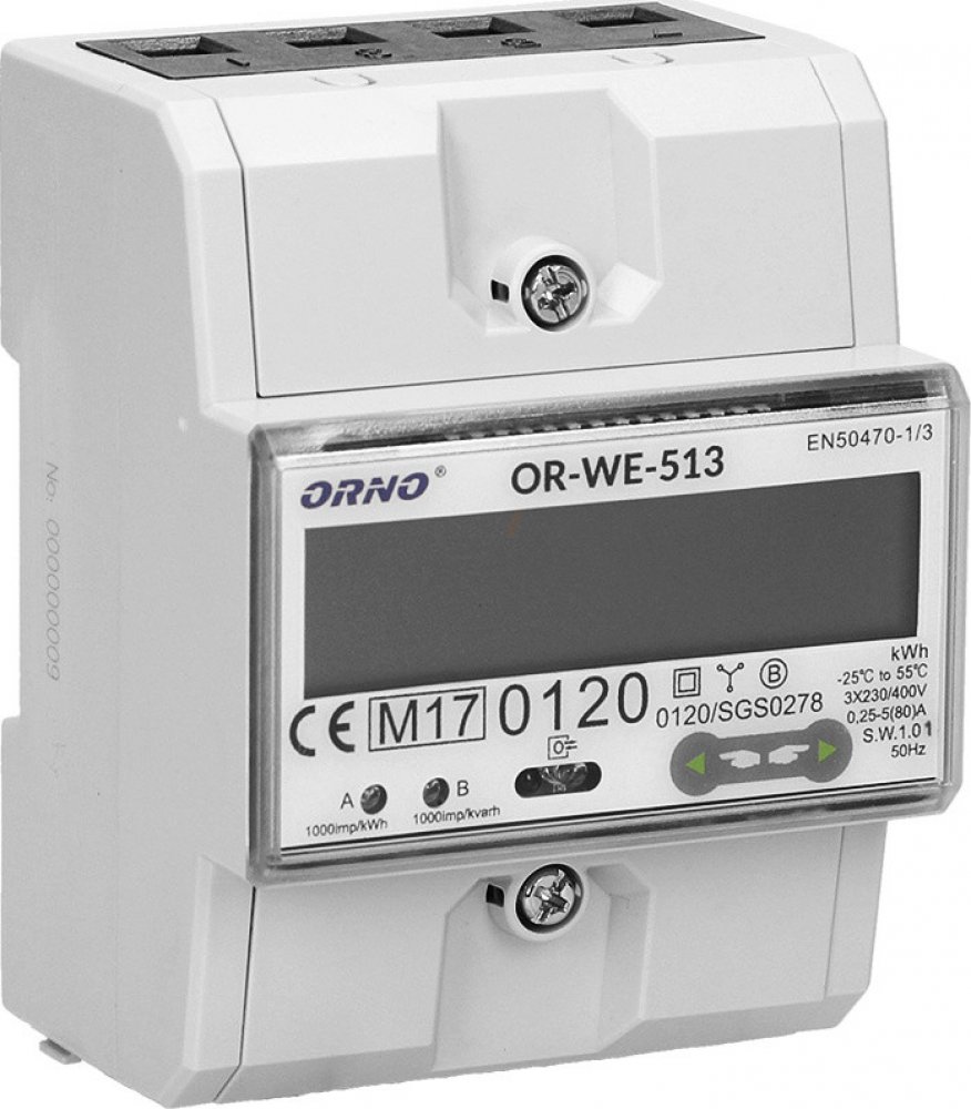 Přístroj pro odečty v metrických jednotkách (kWh), který se používá pro přímé měření činného výkonu v třífázové soustavě. Speciální elektronický obvod pod vlivem protékajícího proudu a přiloženého napětí generuje impulsy v množství úměrném spotřebované elektrické energii. Spotřeba energie v dané fázi je indikována blikající LED d...