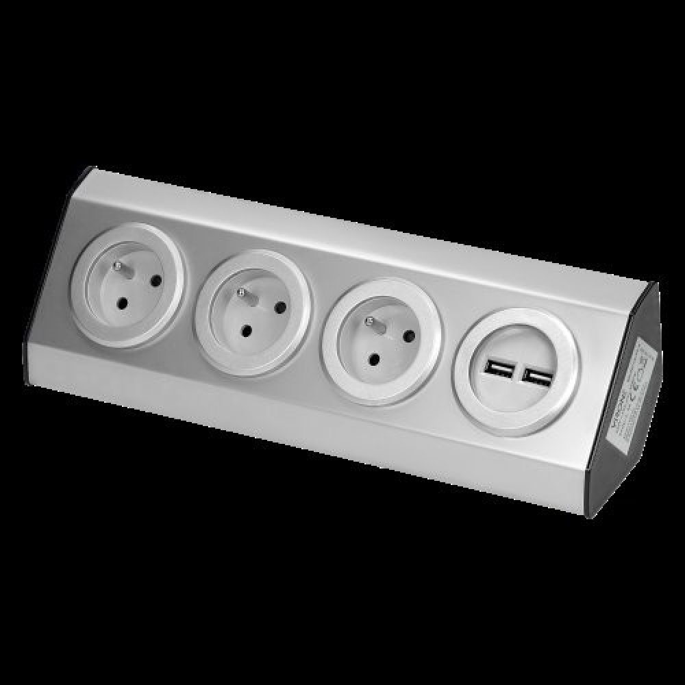 Sada tří napájecích zásuvek s uzemněním a dvojitým USB portem vhodná pro instalaci do skříněk a skříní. Jednoduchá a rychlá montáž pomocí pásků na suchý zip usnadňuje instalaci všem uživatelům a zajišťuje stabilní připevnění k povrchu bez nutnosti vrtání nebo šroubování. Pouzdro z nerezové oceli má obě vlastnosti - vysokou odolnost a elegantní design. Kabel není součástí.