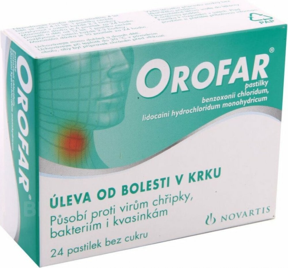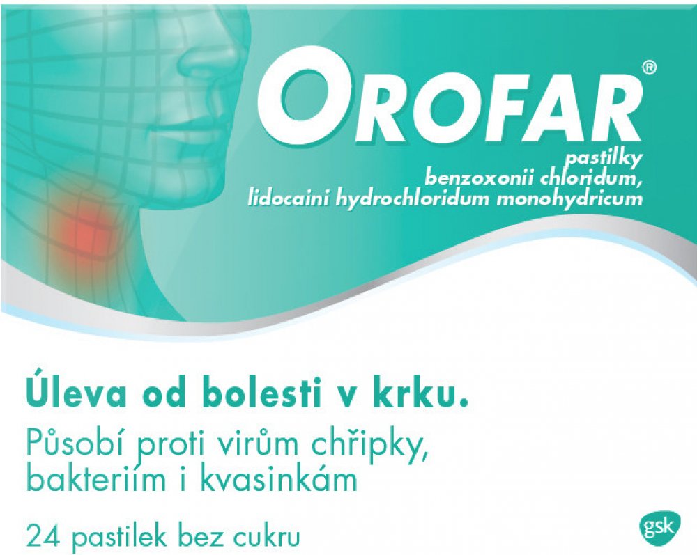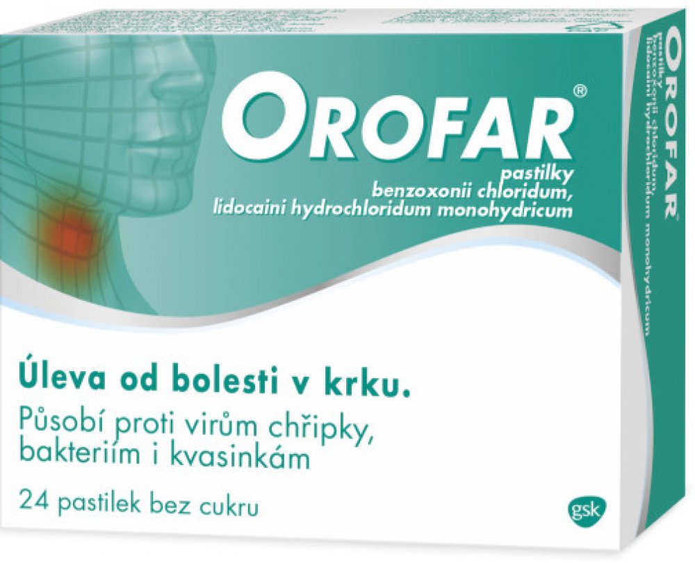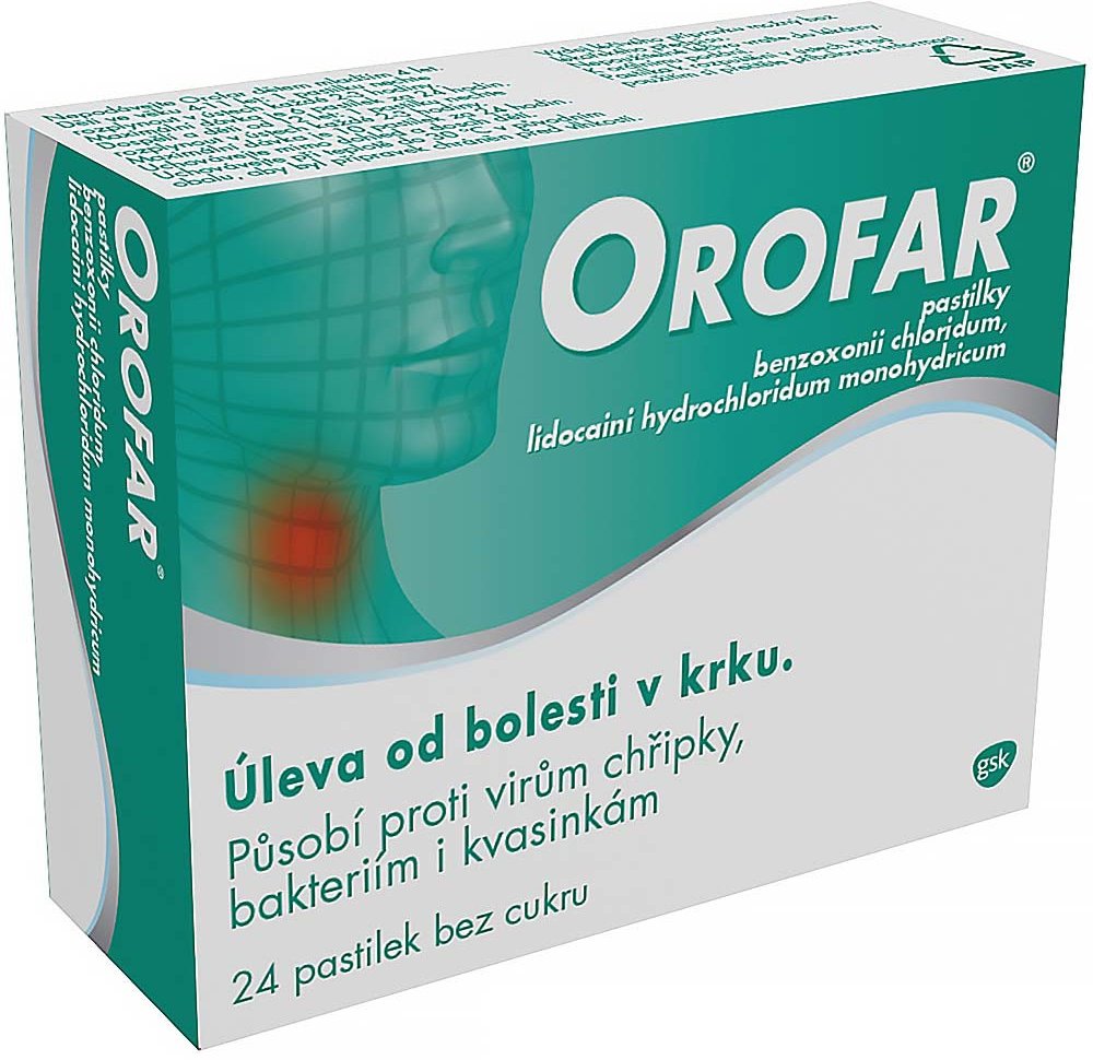 Orofar je dostupný ve formě pastilek, spreje a roztoku pro vyplachování nebo kloktání.