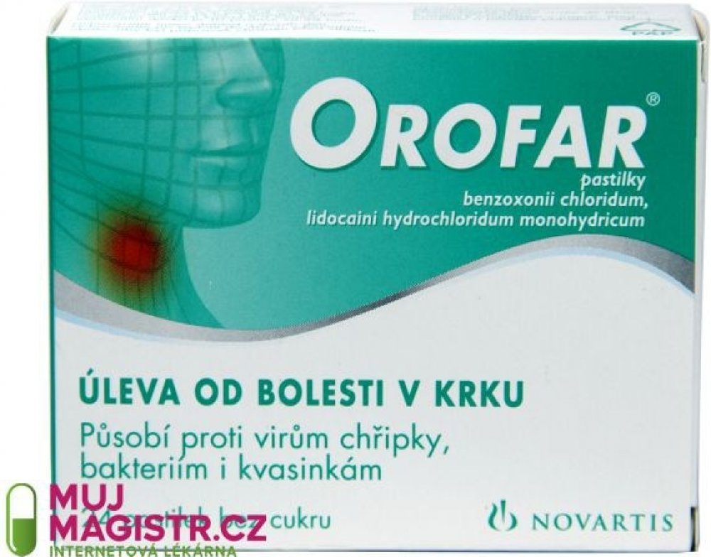 Orofar obsahuje látku proti infekci a látku k znecitlivění (lokální anestetikum), které působí proti