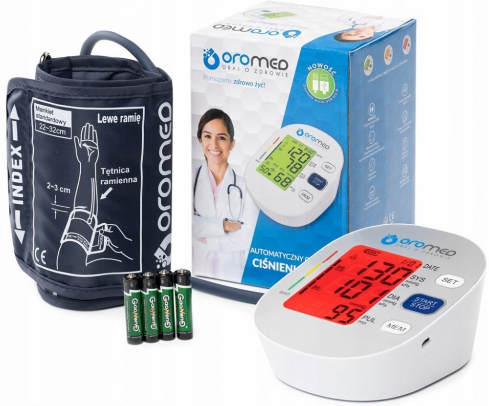 Oromed -Oro -BP 2 Pro je moderní elektronický monitor krevního tlaku s barevným displejem LCD, který používá metodu oscilometrického měření pomocí fuzzy logické technologie. Monitor krevního tlaku je charakterizován vysokou přesností měření ekvivalentní přesnosti měření provedených pomocí auskultální metody pomocí mechanických sfimmomanometrů prostřednictvím kvalifikovaného zdravotnického personál...