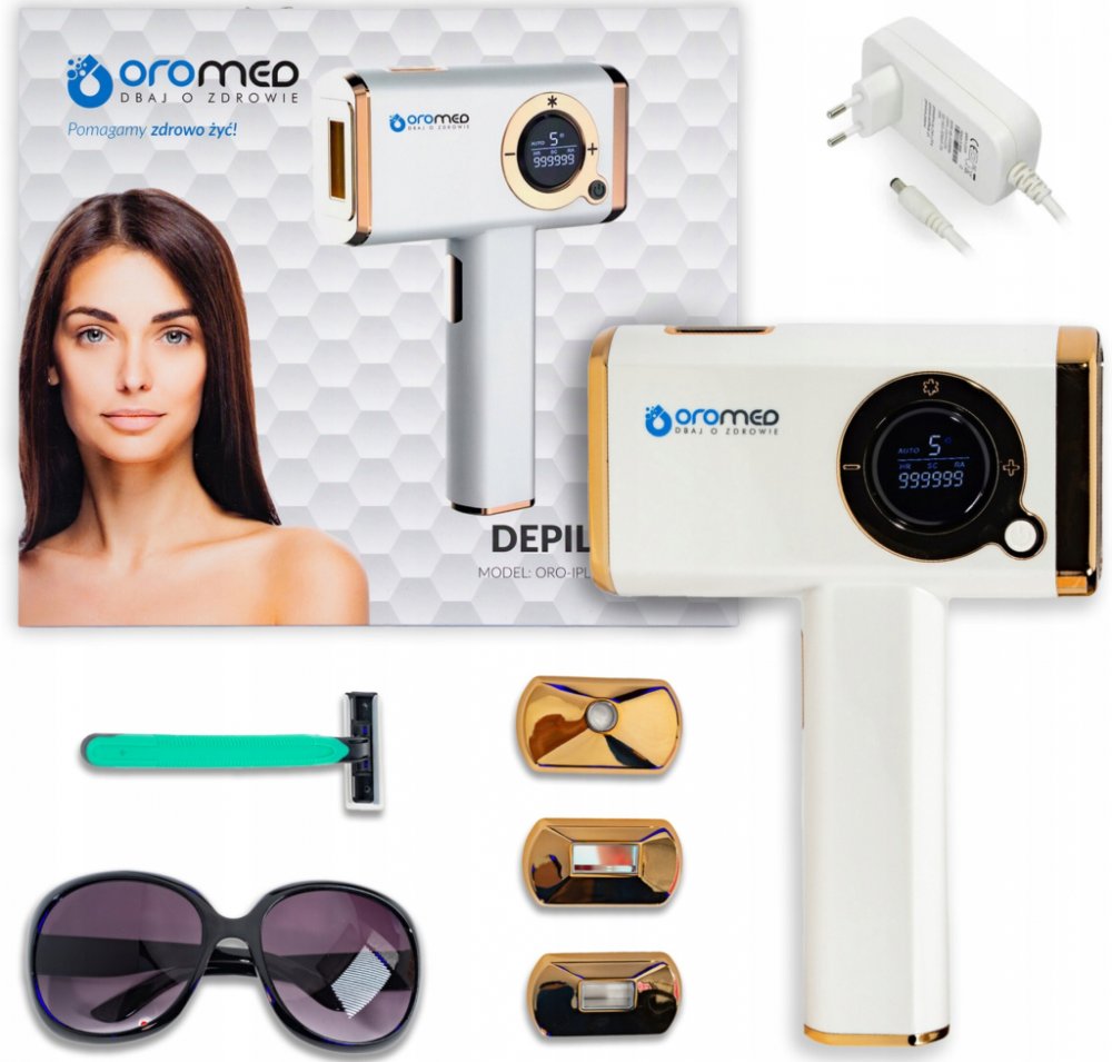 Laserový depilátor IPL ORO ICE je inovativní zařízení pro trvalé odstraňování chloupků, které využívá technologii intenzivního pulzního světla (IPL). Díky funkci absorbování světla melaninem ve vlasovém folikulu generuje depilátor teplo, které poškozuje vlasovou cibulku a zároveň neovlivňuje okolní tkáně. Výsledkem je postupné ztenčení chloupků a při pravidelném používání jejich úplné odstranění. ORO IPL ICE navíc zlepšuje pružnost pokožky, rozjasňuje vrásky a snižuje viditelnost pórů, zanechává pokožku hladkou a osvěženou.