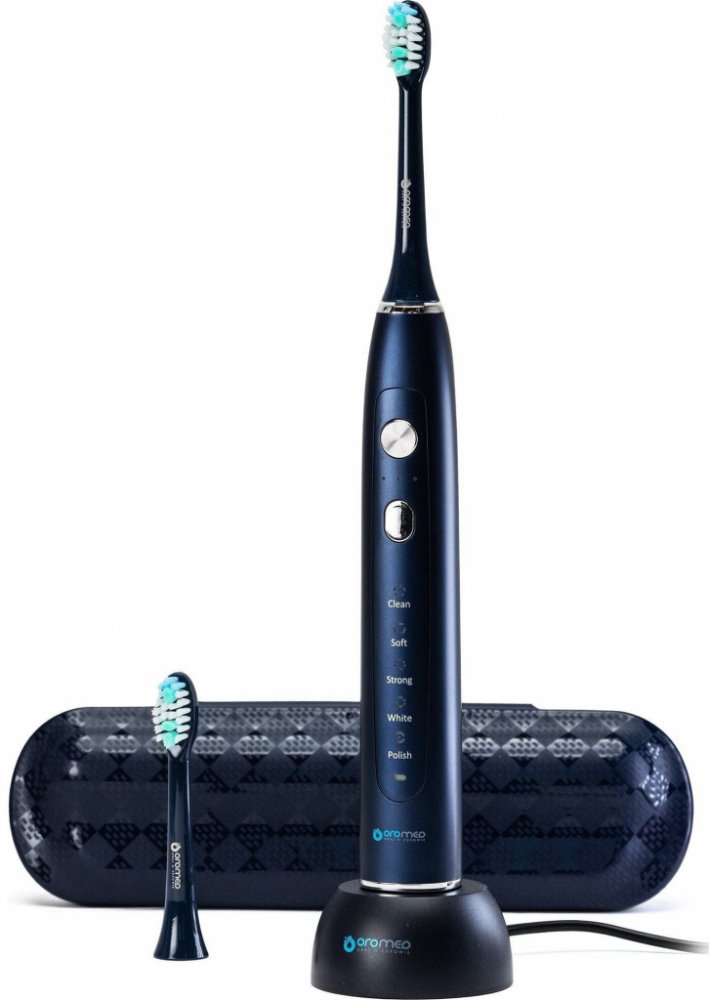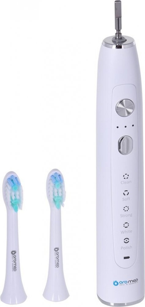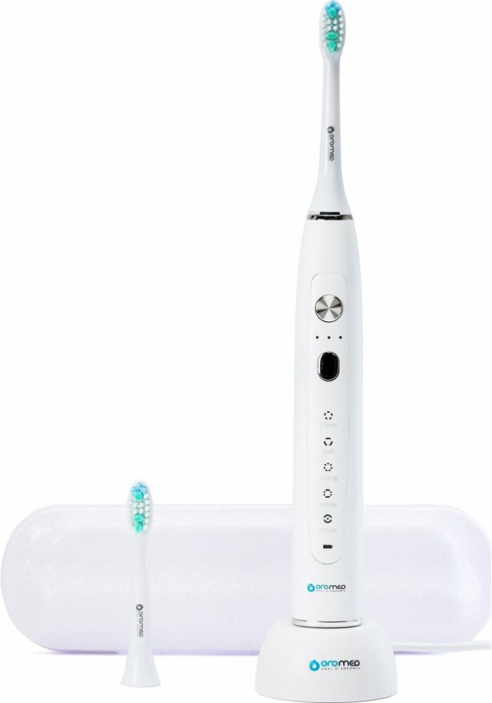 Sonický zubní kartáček Oromed Oro-Sonic X Pro 15 provozních režimů (5 režimů a 3 úrovně intenzity vibrací: Clean / Soft / Strong / White (Whitening) / Polish (Polish) Až 38000 pulzací/min (každý Strong) Stupeň krytí: IPX7 Automatické vypnutí po 2 minutách; připomínka každých 30 sekund (v režimech Clean, Sensitive, Strong a White) Automatické vypnutí po 1 minutě; připomínka každých 30 sekund (v režimu Polish) Střední jemnost na těchto osách Hladina zvuku: =40 dB Indikátor napájení / indikátor nabíjení Indukční nabíječka s USB konektorem Doba použití po jednom nabití: až 40 dní nebo až 160 minut nepřetržitého provozu Baterie: 800 mAh Napájení: 110-240 V; 50/60 Hz Sada obsahuje: 2 hlavy, cestovní pouzdro, USB nabíječka 5 provozních režimů + 3 úrovně intenzity vibrací ;: 1. Čistá 2. Citlivá 3. Silná 4. Bílá 5. Leštěnka Obsah sady: Sonický zubní kartáček 2 hlavy Sonic Cestovní pouzdro & nabíječka s koacute;wką USB (bez adaptéru)Mytí ukazatel času: Ano; Počet hrotů v sadě: 2 kusy; Barva: Modrá, Bílá; Typ: Sonic; Napájení: Dobíjecí; Regulace rychlosti: Ano; Počet režimů čištění: 5; Provozní doba baterie: 160 minut; Maximální rychlost pohybů: 38 000 pohybů/min;Zamýšlené použití: Pro dospělé;Mobilní aplikace: Ne;Senzor tlakové síly: Ne;Indikátor výměny hlavy: Ne;Včetně irigátoru: Ne;Základna se stojanem na špičky: Ne;Cestovní pouzdro: Ano; Režimy kartáčování: Denní, Jemný, Leštění, Bělení, Intenzivní; Série: Žádná