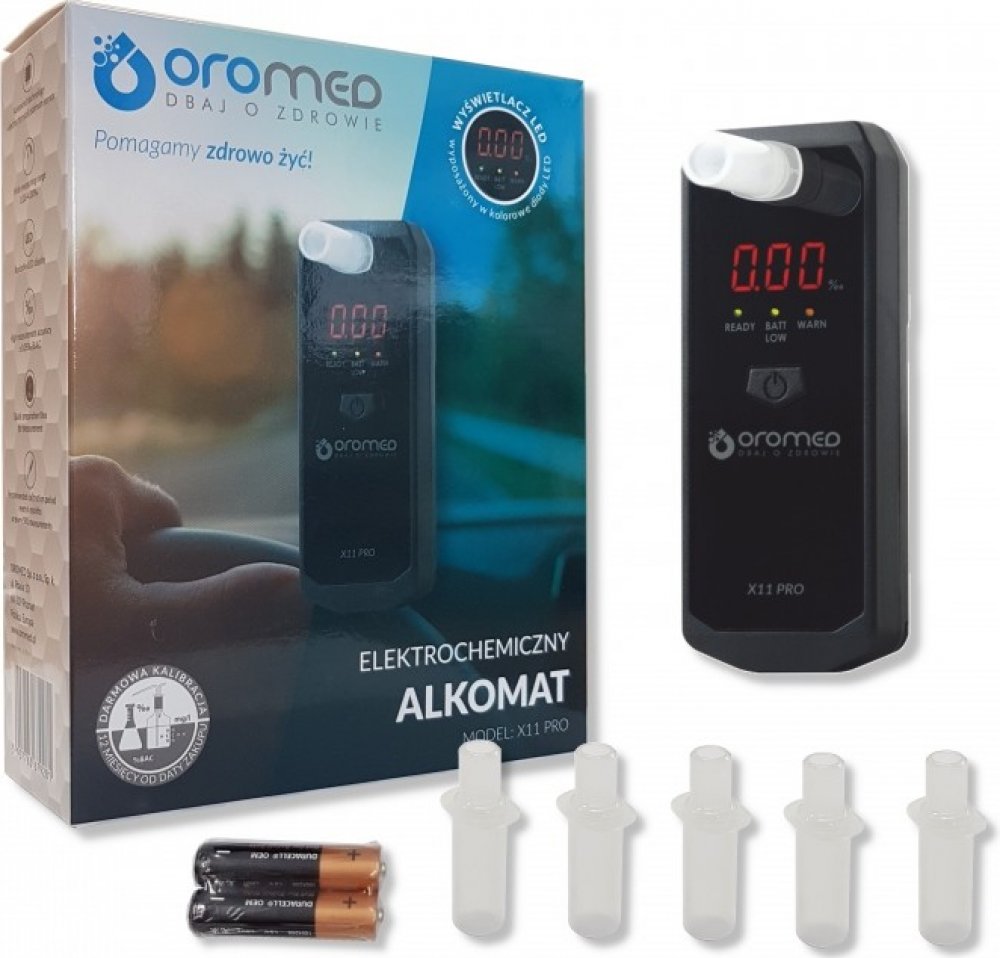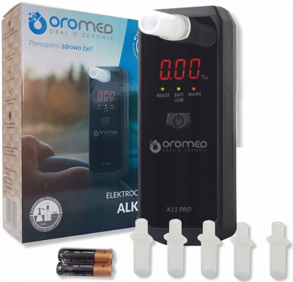 Alkomat OROMED X11 PRO je profesionální zařízení pro testování obsahu alkoholu ve vydechovaném vzduchu. Je vybaven špičkovým elektrochemickým senzorem, který zaručuje vysokou přesnost měření pro celý měřicí rozsah.