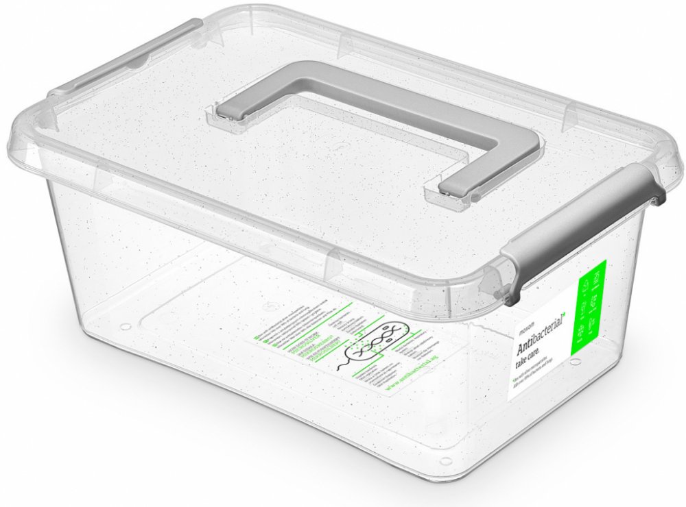 Antibakteriální box 4,5l transparentní. Antibakteriální nádoby jsou vyrobeny z plastu s přídavkem mikročástic stříbra, které ničí bakterie a plísně. Jsou bezpečné pro lidi. Pomohou udržet vše, co dovnitř vložíte, čerstvé a čisté. Použitelné ve školách,nemocnicích a jiných zdravotnických zařízení. Vhodné pro potraviny, léky, kosmetiku, hračky.Vhodné do myčky, mrazničky. BPA FREE neobsahuje škodlivé...