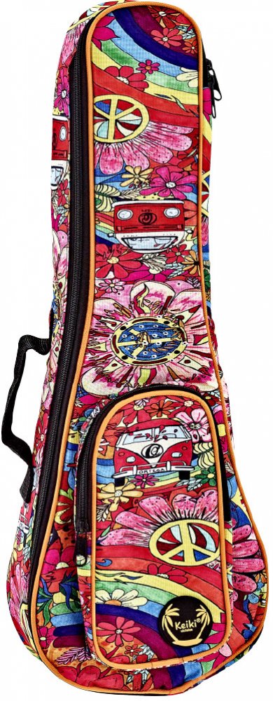 Pouzdro na koncertní ukulele. V tomto roce 2020 představuje Ortega novou sérii obalů pro ukulele Keiko. Pouzdra na první pohled zaujmou pestrobarevnými grafickými motivy inspirovanými street artem. Pouzdro je vyrobeno z odolného nylonového materiálu. Vnitřní polstrování 10 mm dobře ochrání váš nástroj před poškozením. Pouzdro má rukojeť a nastavitelné popruhy pro nošení na zádech. Spolehlivé robustní zipy. Na vnější straně pouzdra se nachází kapsa na uložení příslušenství. Barva výrobce: peace '68. Barevné provedení: Grafika.