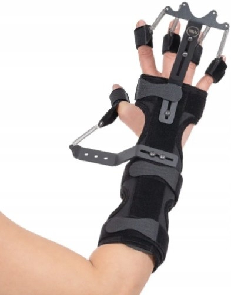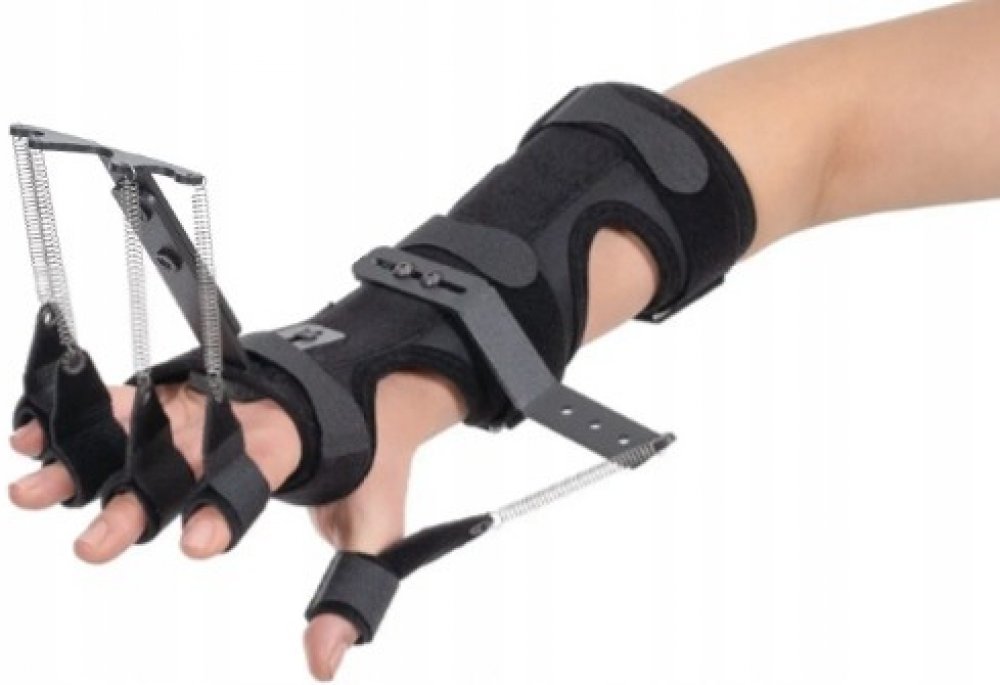 Rehabilitační trenažér pro procvičování prstů a rekonvalescenci po úrazech a nemocech. Pasivně udržuje zápěstí a prsty v extenzí. Zajišťuje zátěž při ohýbání prstů