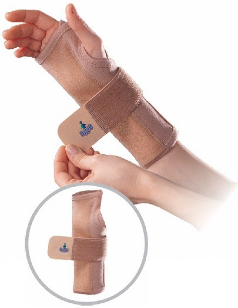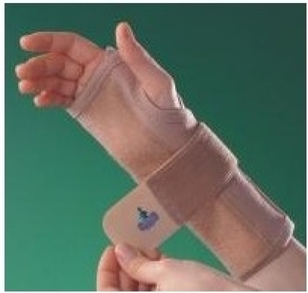 Ortéza je vyrobena ze silného, elastického, prodyšného materiálu, jemně zahřívá zápěstí. Kovová dlaha, kterou je možné tvarovat, zajišťuje celkové znehybnění zápěstí, stahující páska dodatečně stabilizuje zápěstí.