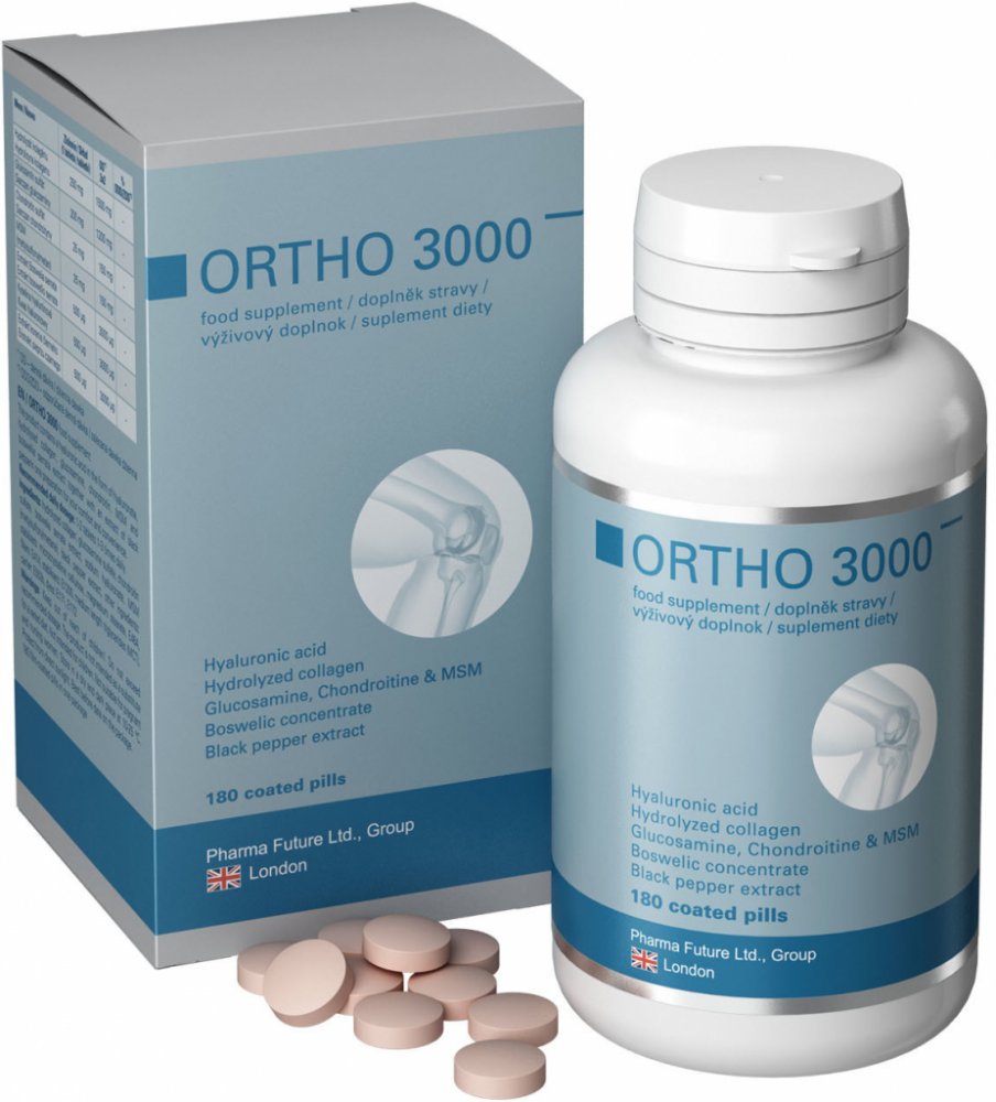 Přípravek obsahuje unikátní ORTHO COMPLEX se speciálním složením v jednom přípravku pro Váš komfort a pohodlí a jako první volba z doplňků pro aktivní životní styl. ORTHO COMPLEX pro maximální účinnost vhodně kombinuje vysoce sofistikované a maximálně kvalitní složky: kyselinu hyaluronovou ve formě hyaluronátu, hydrolyzovaný kolagen, glukosamin, chondroitin, MSM a extrakt z boswellia serrata spolu s extraktem pepře černého, který specifickým mechanismem pozitivně ovlivňuje všechny ostatní složky a ingredience v pečlivě vyváženém komplexu.
