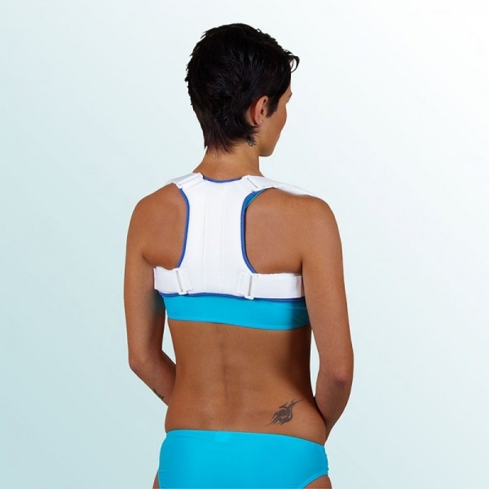 Tato fixace je jednoduchá při aplikaci a veškeré manipulaci. Přezky k utažení jsou umístěny v oblasti hrudní páteře mezi lopatkami, kde nepřekáží při manipulaci s oděvem. Popruhy vedené kolem ramen podpaždím netísní a nevytváří oběhové poruchy v horních končetinách. Provedení UNI, plně hrazeno ZP.