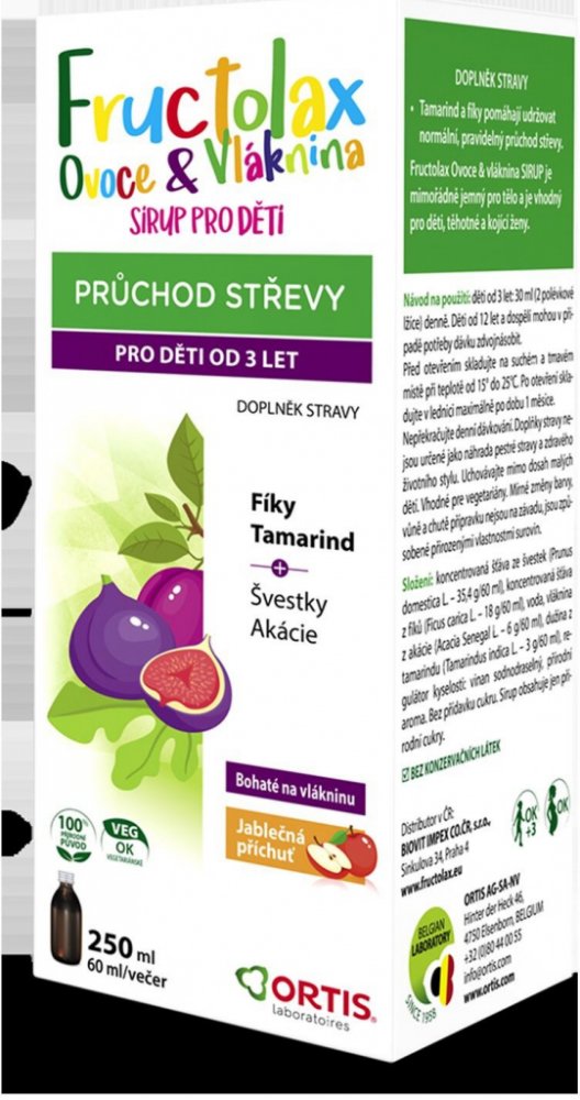 Ortis Fructolax Ovoce&Vláknina sirup pro děti 250 ml