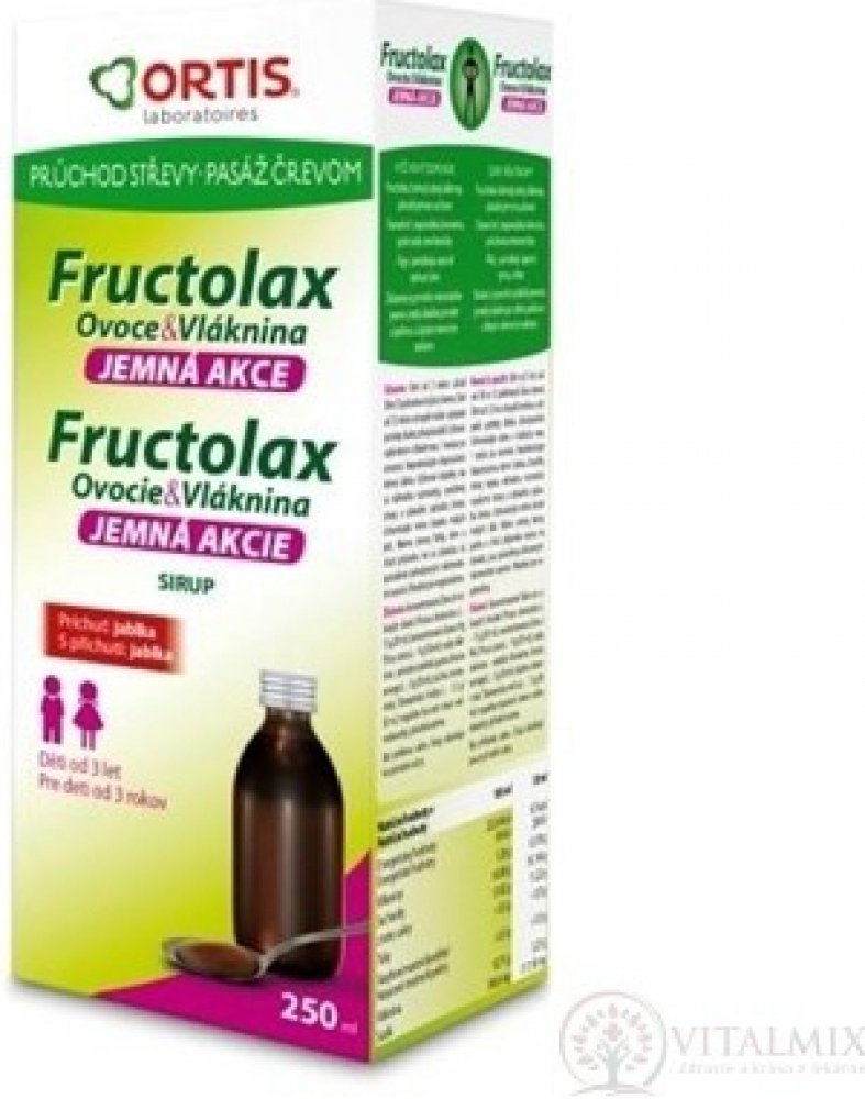 Doplněk stravy Fructolax obsahuje pouze koncentrovanou šťávu z ovoce a vlákninu, které napomáhají přirozenému vyprazdňování. Fíky pomáhají upravit rytmus střev a tamarind napomáhá střevnímu průchodu mechanicky. Obsažené látky jsou nedráždivé, pouze stimulují funkci střev. Fructolax je zcela přírodní přípravek se zvláště jemným složením, díky němuž je přípravek vhodný také pro děti, citlivé jedince...