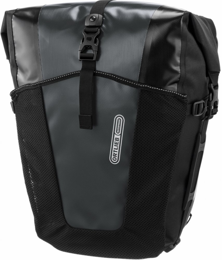 Cyklistická taška Back Roller XL je vyrobena z odolného, voděodolného polyesterové plachtoviny. Tento materiál je odolný proti oděru. Objem tašky je 70 litrů na pár a je vhodná pro dlouhé cesty. Taška má praktickou přední kapsu. Nabízí čtyři litry dodatečného objemu v kapse na věci, které potřebujete rychle (není vodotěsná). Spolehlivý rolovací uzávěr chrání hlavní obsah brašny před vlhkostí a nečistotami. Upevňovací systém Quick-Lock umožňuje snadné a bezpečné připevnění ke standardním nosičům na kolech. Tašku vyrábíme v naší továrně v Heilsbronnu. Konstrukce je opravitelná a navržena pro dlouhou životnost. Vodotěsnost je standardem.