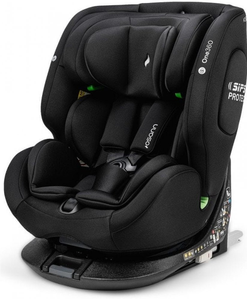 Výjimečná autosedačka ONE 360 značky OSANN je určena pro děti od 40 do 150 cm. Je otočná o 360°, což usnadňuje manipulaci a dítě lze v autě vozit v protisměru až do 105 cm. V pozici po i proti směru umožňuje 4 polohy sklonu. Výškově nastavitelná opěrka hlavy zároveň automaticky nastavuje výšku pásového systému. Do auta ji lze připevnit jak na Isofix, tak na 3 bodový pás auta.