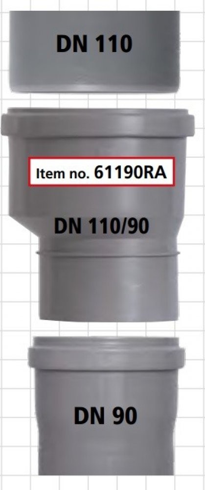 Obrácená redukce Hrdlo DN 110 / hladká(dřík) 90 , odolné proti horké vodě ( Chování při požáru: Testováno podle DIN 4102-B2, EN 13501-1E, EN 11925-2 ) , vyrobeno z polypropylenu , těsnění dle EN 681