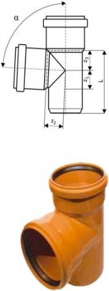 Hlavní průměr KG odbočky je 160 mm a vedlejší (odbočovací) je 160 mm pod úhlem 90 stupňů. Má dvě hrdla a těsnění.