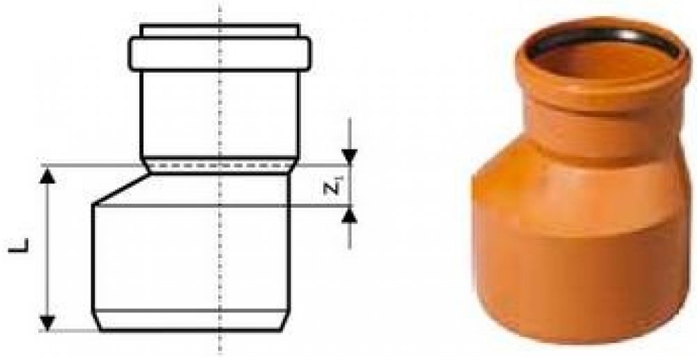 KG redukce, venkovní průměr 200 x 160mm, SN4, je vhodná pro venkovní kanalizace uložené v zemi.