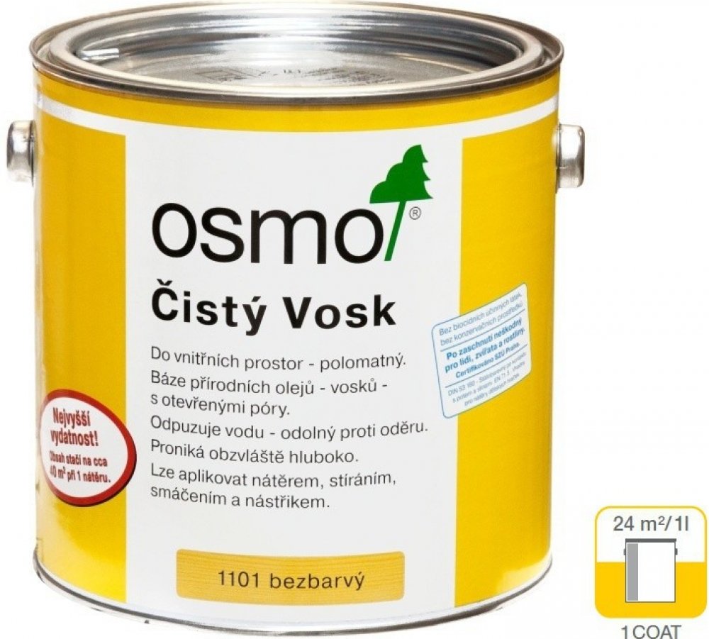 Čistý vosk pronikne zvláště hluboko do dřeva a zachová jeho přírodní charakter. Povrch odpuzuje vodu a zůstává porézní.
