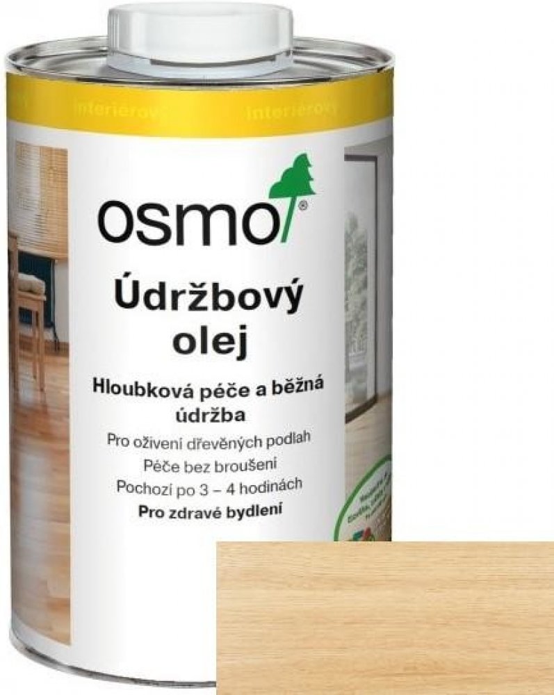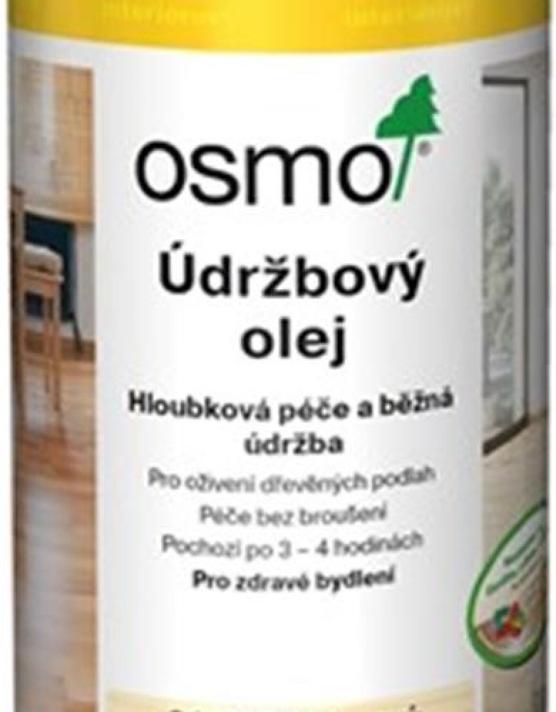 Popis produktu: Osmo Údržbový olej zajišťuje hloubkovou péči i běžnou údržbu olejovaných podlah. Zašlé a matné podlahy Osmo Údržbový olej oživí. Při včasném použití Osmo Údržbového oleje (neošetřené dřevo nesmí být vystaveno okolním vlivům) zabráníte pracnému broušení a nutnosti provádět renovační nátěry.