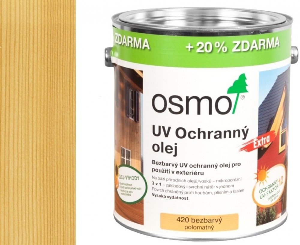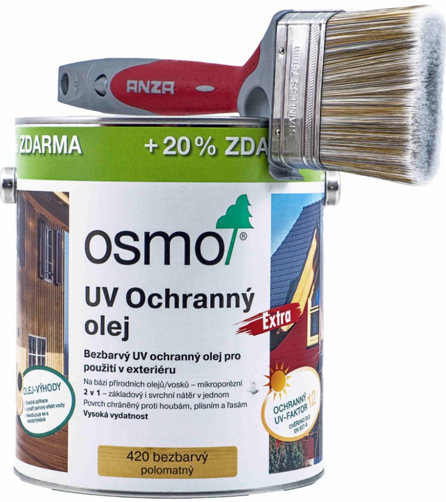 - Osmo UV ochranný olej bezbarvý Extra je hotový přímo k natírání, neředit. Důkladně promíchat.