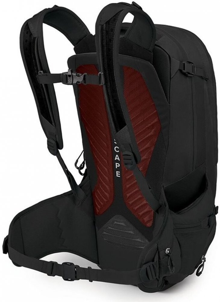 Propracovaný batoh Osprey ESCAPIST 25 M/L je ideální na cyklovýlety a na turistiku. Vysoce prodyšné ramenní popruhy, bederní pás a zádový systém AirScape™ se postarají o vaše pohodlí během zvýšené aktivity. Malá kapsa vhodná na MP3 nebo GPS se nachází na ramenním popruhu. Zádový systém si můžete nastavit přímo na vaši postavu tak, aby pěkně sednul na záda. Reflexní prvky se postarají o zvýšenou viditelnost i za zhoršených podmínek. Boční a přední síťované kapsy pojmou další vybavení, které s sebou budete potřebovat. Úchyt na cyklistickou helmu LidLock™, úchyt na blikačku a vnitřní organizér na pumpičku a nářadí vám zpříjemní váš pobyt na kole. Součástí tohoto batohu je i integrovaná pláštěnka.
