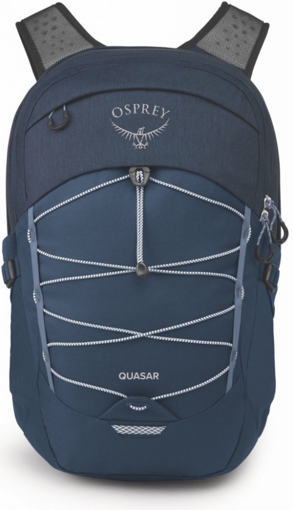 Osprey Quasar 26 - Velice oblíbený, praktický lehký městský batoh nové generace s kapsou na 14" notebook, tablet, dokumenty apod. Prodyšný zádový panel a měkké popruhy zajišťují pohodlné nošení. Mezi základní výbavu patří boční stahovací popruh, přední stahovací "pavouk", boční síťované kapsy, vnitřní organizér, píšťalka na hrudním popruhu, odepínatelný bederní popruh.