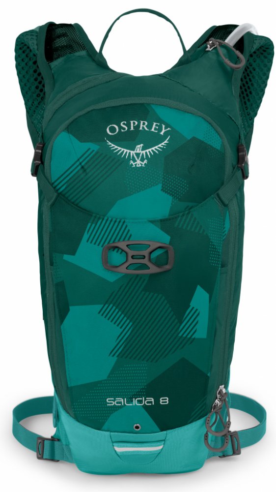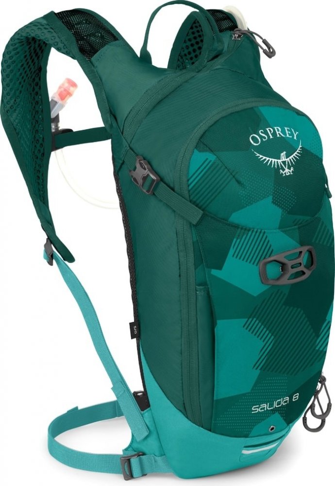 Osprey SALIDA 8 TEAL GLASS - OSPREY SALIDA 8 je dámský technický a vysoce výkonný batoh. Má pevnou a trvanlivou konstrukci s působivou organizační kapacitou a progresivním designem. SALIDA je vybaven pohodlným zádovým panelem Airscape ™ s velkým vzduchovým kanálem, který podporuje proudění vzduchu v horkých a vlhkých podmínkách a zároveň se vyznačuje stabilním a pohodlným usazením na zádech. Na zádech perfektně drží také díky bedernímu pásu. Vodní rezervoár o obejmu 2,5 l poskytuje snadný přístup k vodě, udržuje vás hydratovanou během jízdy a díky magnetickému držáku na hrudním pásu nikdy nebudete hledat ventil. Když už je řeč o magnetech, hrudní popruh má inovativní uzavírací mechanismus právě na magnet. Manipulace s ním je tak snazší než kdy dříve. Batoh má velkou centrální kapsu s několika vnitřními možnostmi organizování. Uvnitř nechybí několik síťovaných kapes na zip. To vše je přístupné prostřednictvím vstupu v celé délce, což vám umožní přístup k celému obsahu vašeho batohu, ideální, když potřebujete opravit kolo nebo najít občerstvení. SALIDA obsahuje přední strečovou kapsu na uložení mokrého prádla, ale také umožňuje snadné přenášení například celoobličejové helmy, zatímco přípojný systém Lid-Lock™ umožňuje připevnění tradiční cyklistické přilby. Pro uložení vašich slunečních brýlí nebo drobností je v předním panelu kapsa, spolu s jasně zbarveným klipem na klíče.
