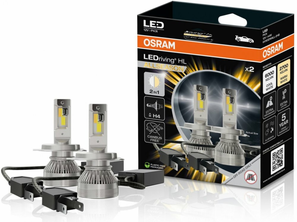 LED Allseason autožárovka od společnosti OSRAMLEDriving Allseason H4 jsou skvělou náhradou za běžné halogenové žárovky. OSRAM LEDriving disponuje integrovanou CANBUS jednotkou a nabídne možnost volby barevné teploty světla, a to mezi studenou a teplou bílou. Kompaktní LED náhrada se používá v dálkových a potkávacích světlech. OSRAM LEDriving Allseason poskytnout vynikající osvětlení pro zlepšení v...