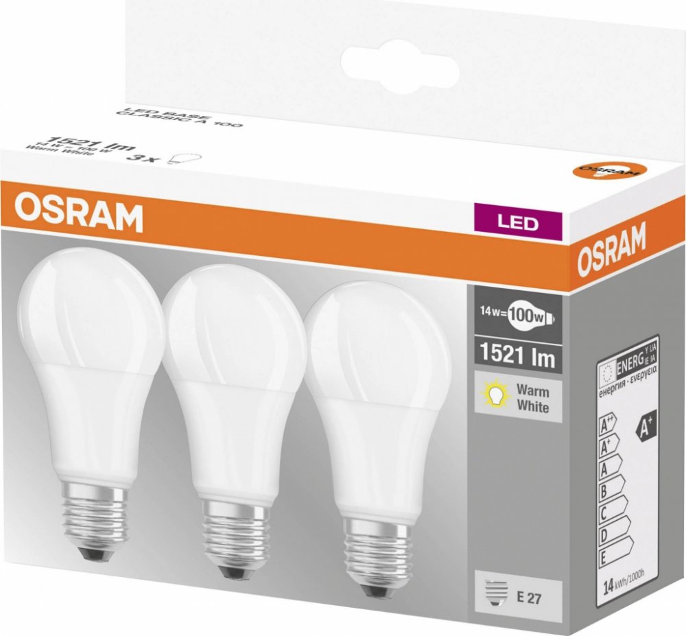 Osram 3PAK LED žárovka LED E27 A60 14W = 100W 1521lm 2700K Teplá bílá 360°
