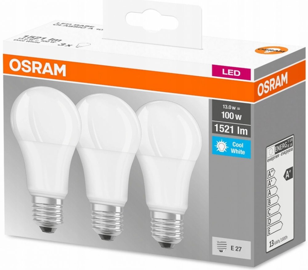 Značka OSRAM je jednou z nejlepších značek na trhu, která nepřetržitě dodává osvětlení od roku 1906. Produkty značky OSRAM se vyznačují velmi dobrou kvalitou a dlouhou životností.3PAK LED žárovka E27 A60 13W = 100W 1521lm 4000K Neutrální 360° OSRAM✴ HLAVNÍ VÝHODY PRODUKTU: