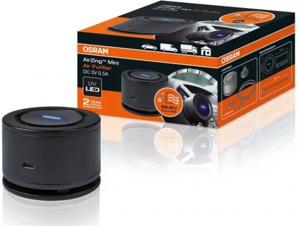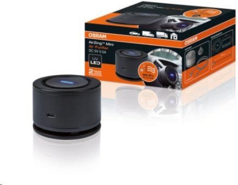 Jmenovité napetí V 5 V váha g 11 g vyska v mm 100 50 mm Hloubka mm 80 mm Sirka v mm 80 mm spotřeba energie W 2 W OSRAM AirZing Mini je inovativní řešení, které pomáhá čistit vzduch ve vozidlech. AirZing Mini nasává vzduch a filtruje ho přes filtr z oxidu titaničitého, kde za přítomnosti UV-A záření dochází ke vzniku fotonicko-katalytické reakce. Tato reakce odstraňuje ze vzduchu škodlivé bakterie a viry. Proces čištění může také eliminovat zápachy a nepříjemné pachy a zajistit řidičům čistý čerstvý vzduch. Filtr s oxidem titaničitým lze vyjmout a umýt, údržba je nenáročná, není třeba neustále kupovat a vyměňovat filtry. AirZing Mini, navržený speciálně pro použití ve vozidle, je dodáván s magnetickým uchycením pro flexibilní montážní polohy. Napájecí kabel dodávaný s USB-C zajišťuje stálé bezpečné uchycení za jízdy. Konkurenční objednací čísla: LEDAS101 OSRAM LEDAS101 Ionizator vzduchu Osram GmbH