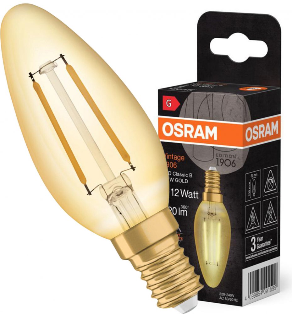 Osram B35 Candle E14 1,5W = 12W 120 lm 2400K Warm Vintage 1906