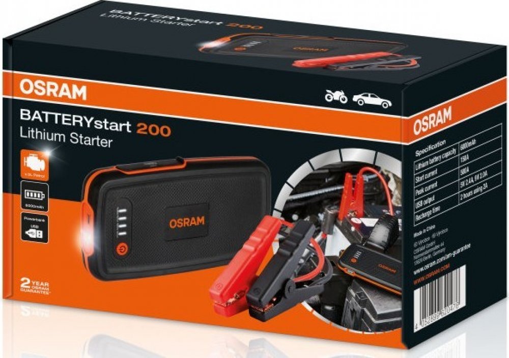 OSRAM BATTERY start 200 je výkonný lithium-kobaltový startér s kapacitou 6000 mAH pro 12V vozidla do 3L.