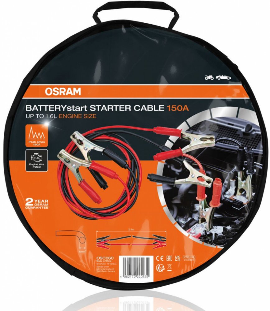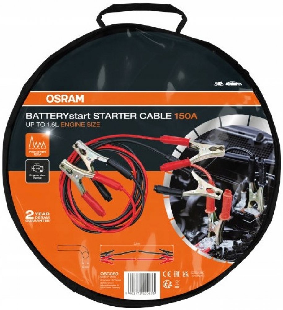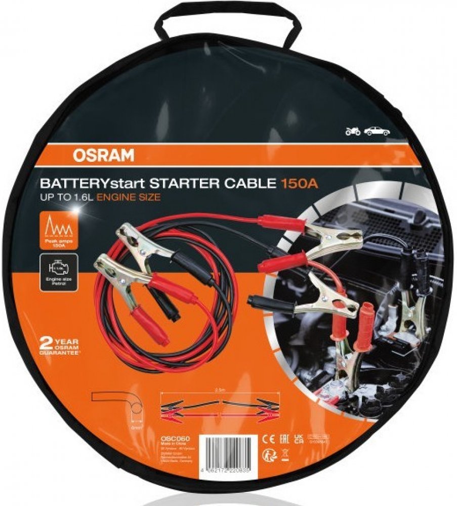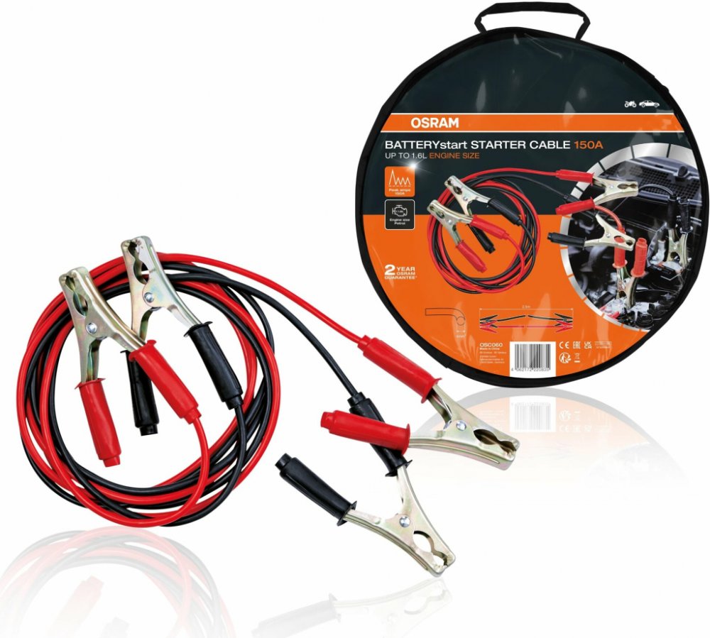 I když kabely na startování nespadají do povinné výbavy řidičů, je lepší je vozit sebou. Kabely na startování OSRAM jsou dlouhé 2,5 m, což se využije zejména tehdy, pokud je mezi auty větší prostor. O správné vedení elektrického proudu se starají vodiče z hliníku, které jsou pro lepší vodivost ještě pokovovány mědí. Vyhovovat budou slabším motorům zahradní techniky a autům na benzín s objemem do 1...
