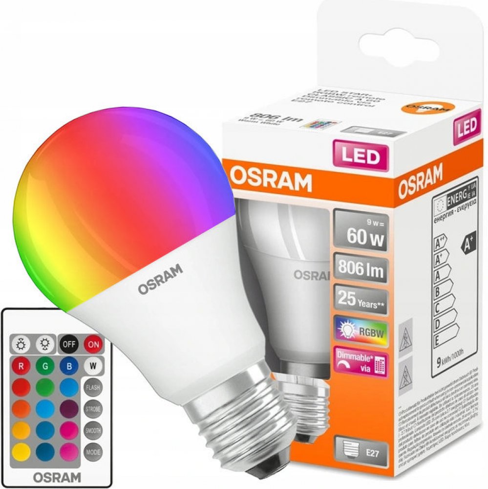 RGB 2700 K G klasická Osram 25000 h 806 lm E27 9 W 230 V 80
