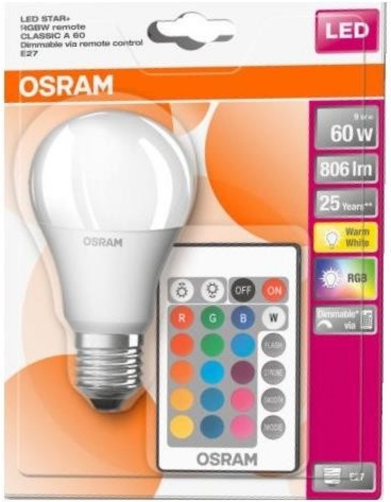 Osram LED žárovka přesvědčivě zaujme jednoduchou instalací. Spotřebuje až o 80 % méně energie než běžná žárovka. Ovládání je individuální a není k tomu nutná žádná aplikace ani smartphone. Komfortní a intuitivní infračervené dálkové ovládání velmi usnadňuje použití žárovky. Spínání a regulace jasu ve 4 stupních a nastavení barvy se provádí zcela jednoduše stisknutím tlačítka. Barevné smyčky zaruču...