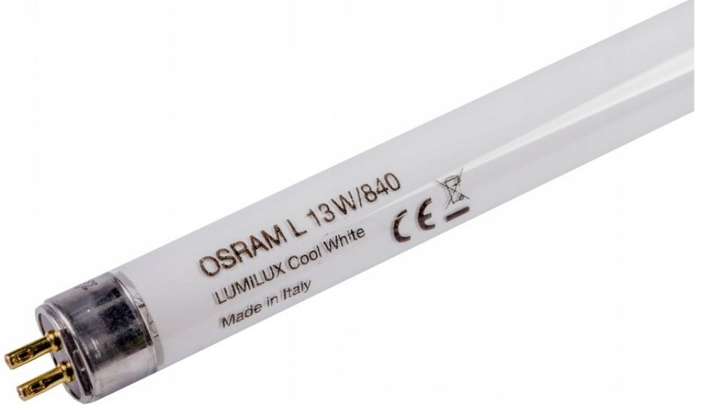 Žárovka T5 OSRAM 13W/840 LUMILUX COOL WHITE OSRAM. Délka 517 mm. Průměr 16 mm. Patice G5/T5. Max. Příkon 13W. Typ zdroje lineární zářivka. Barva světla 4000K (denní bílá). Životnost 10 000 hodin. Řada LUMIX COOL WHITE.